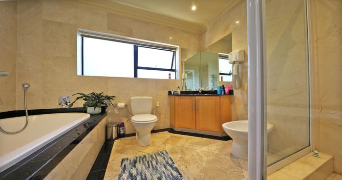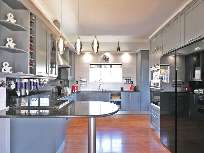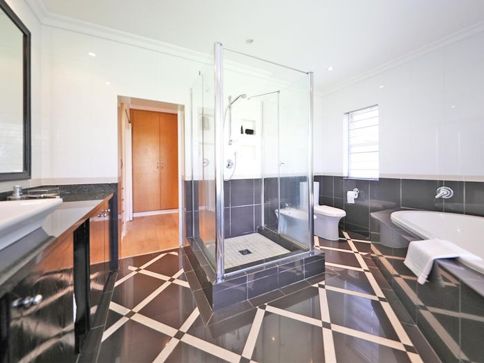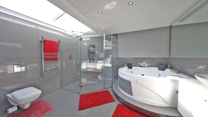 Five bedrooms, five bathrooms, 550 m² floor size, 1,237 m² land size, double garage in Plattekloof.