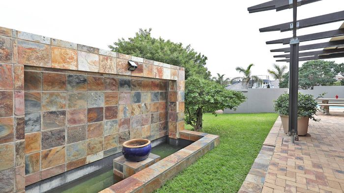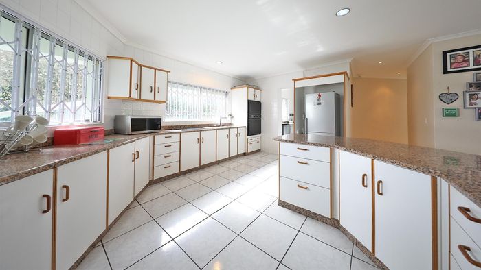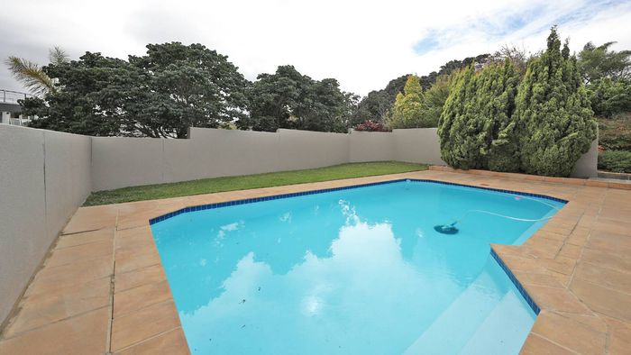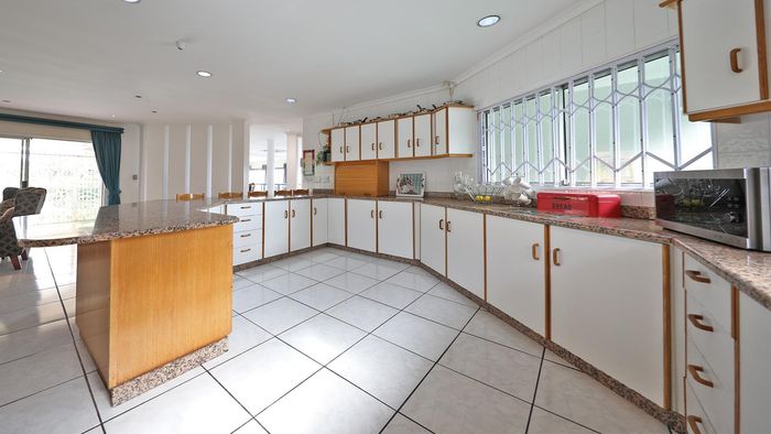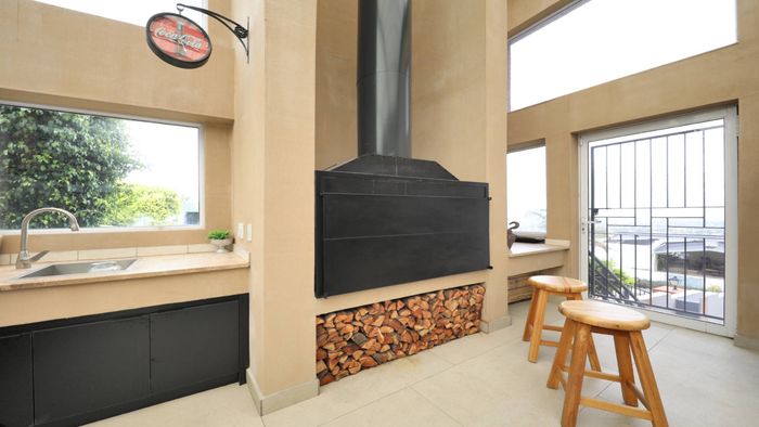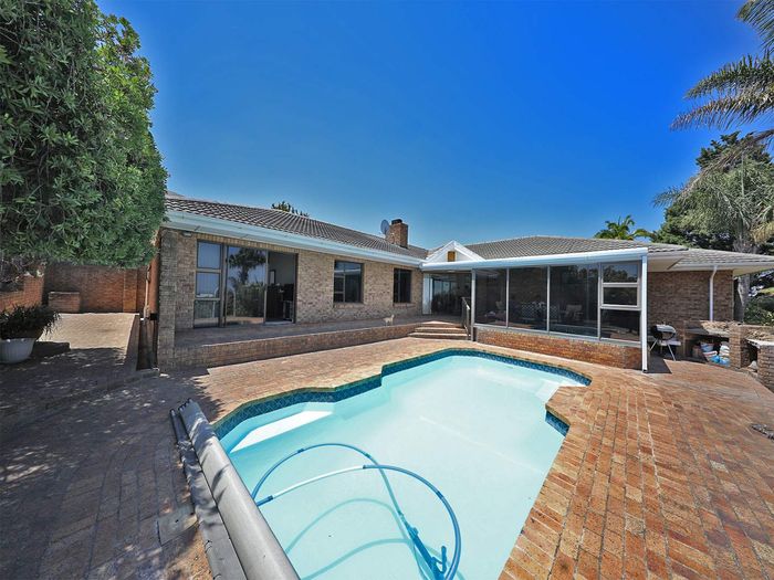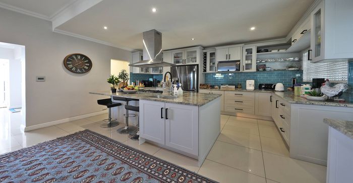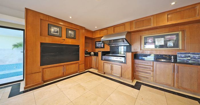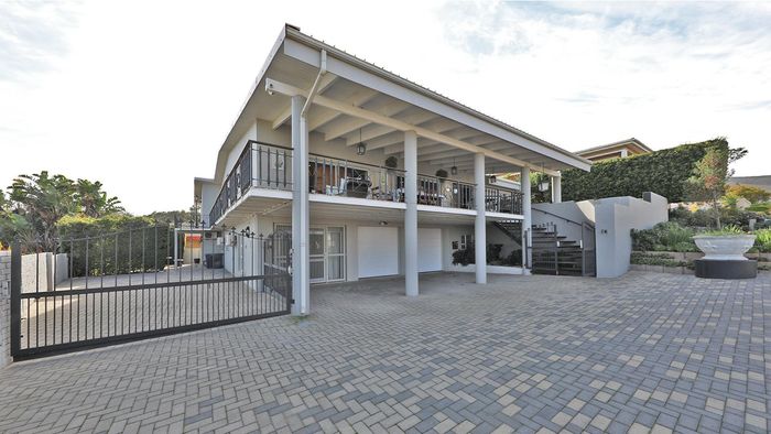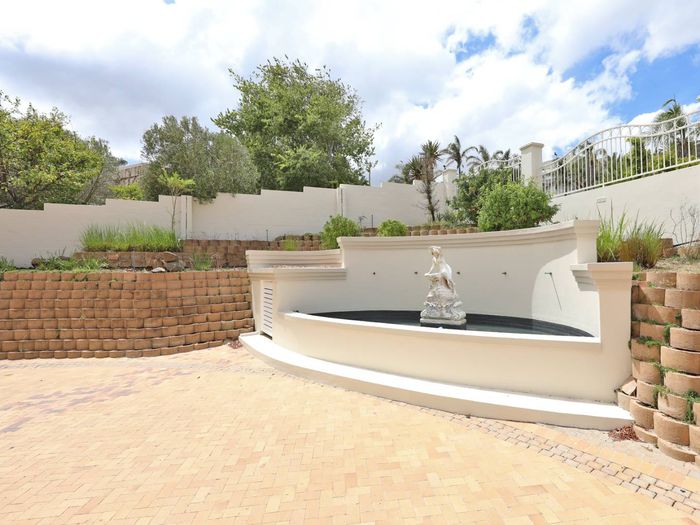 This exclusive home has stunning views, a pool, lush garden, gourmet kitchen, four bedrooms, double garage, alarm system, and CCTV cameras.