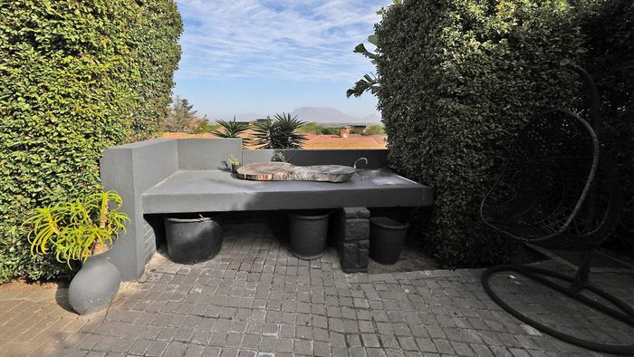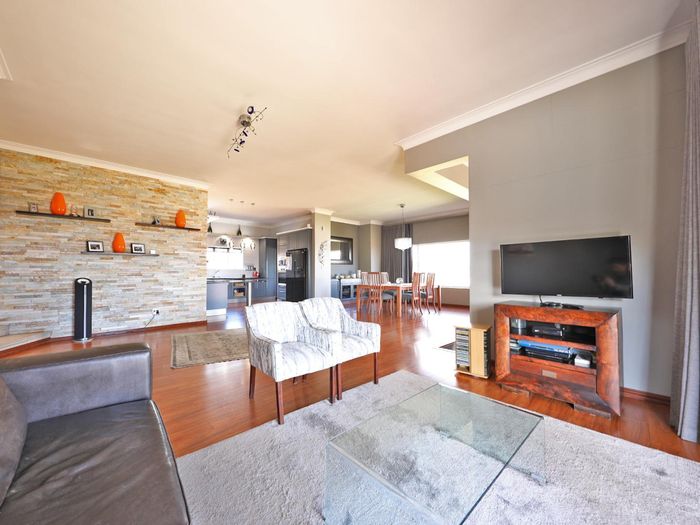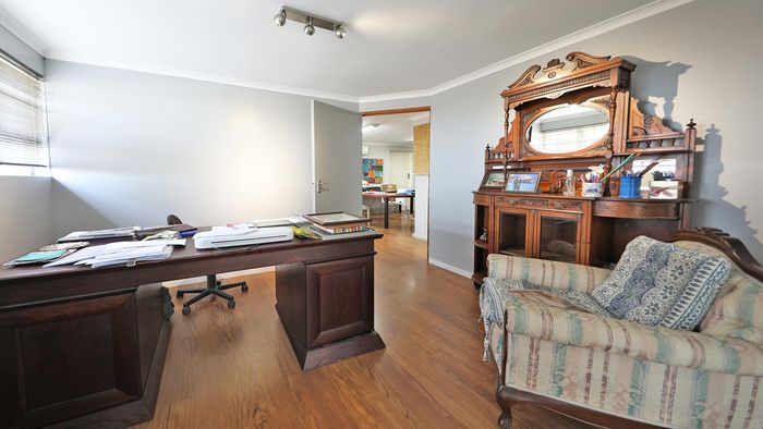 Versatile 4-bedroom, 5-bathroom Plattekloof home with office space, flatlet, and business potential; features parking, security, and scenic views.
