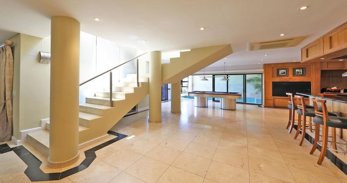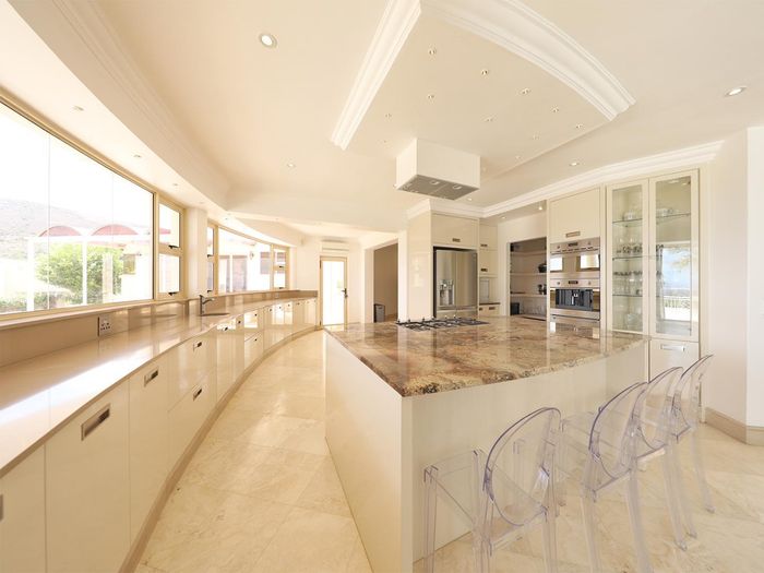 Enjoy Cape Town sunsets and sweeping Atlantic and Table Mountain views from this entertainer’s home with a glass lift, heated pool and wood-fired pizza oven. Six bedrooms, six bathrooms.