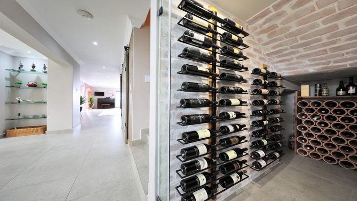 Luxurious and immaculate high-end home with grand kitchen, wine cellar, pool, and spacious bedrooms. Manicured garden, three garages, and visitor parking.