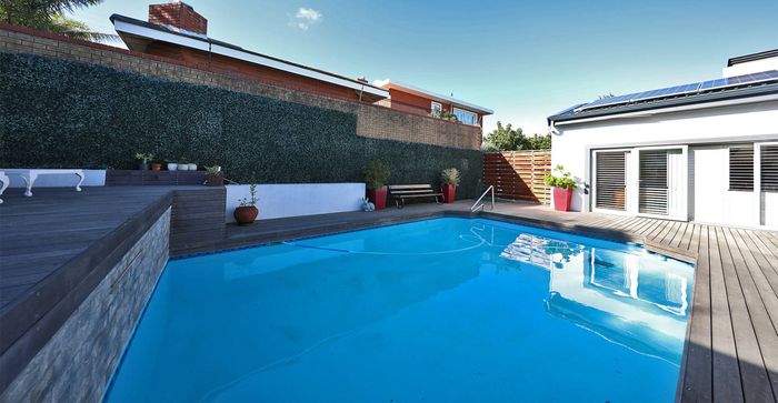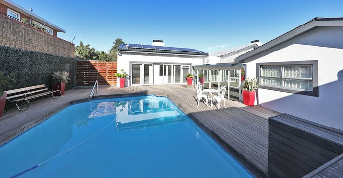 Luxurious single-story home in Plattekloof with 3 bedrooms, 2 bathrooms, pool, garage, and stunning views of Table Mountain.