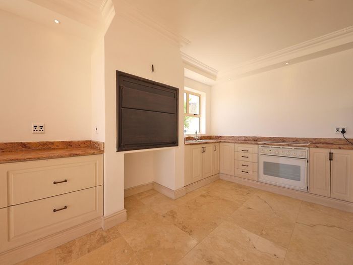 Luxurious colonial home in Plattekloof features stunning views, gourmet kitchen, spacious bedrooms, outdoor entertainment area, and three garages.
