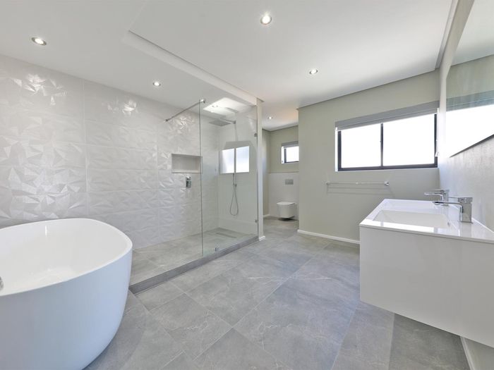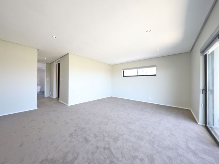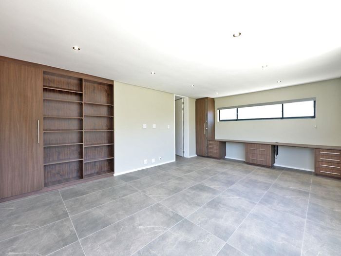 This home offers ultra-modern and rustic finishes and spacious entertainment areas. The open-plan kitchen is complete with granite kitchen tops and top-of-the-range fitted appliances, and lovely-sized bedrooms all with en-suite bathrooms. As expected, there are spectacular views of Table Mountain and the Cape Peninsula, and it is situated along a green belt.
