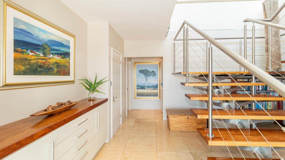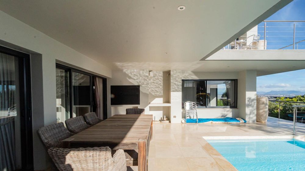 The entertainment area boasts an outdoor terrace and a beautiful rim-flow pool which is undercover, an outdoor braai area and a picturesque garden.