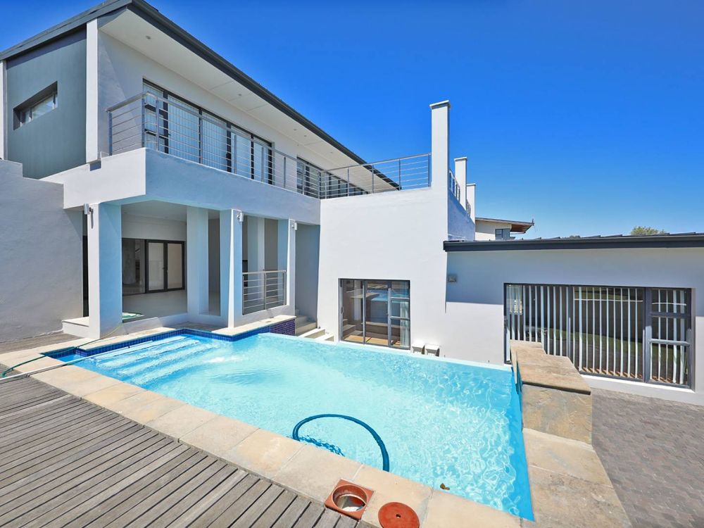 The double volume entrance hall leads to the entertainment areas such as the games room, a second lounge, a built-in-bar which leads out to a spacious patio which includes a built-in braai and pizza oven which overlooks the newly refurbished swimming pool.