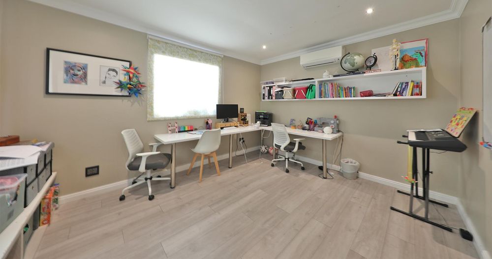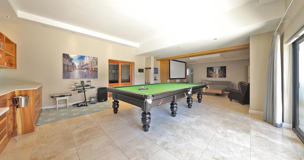 Hosting family and friends has never been more enjoyable. The open-plan dining area, cinema room, and games room flow seamlessly into an enclosed braai room. From there, step out to a sparkling swimming pool and a beautifully designed outdoor entertainment area—perfect for creating unforgettable memories.