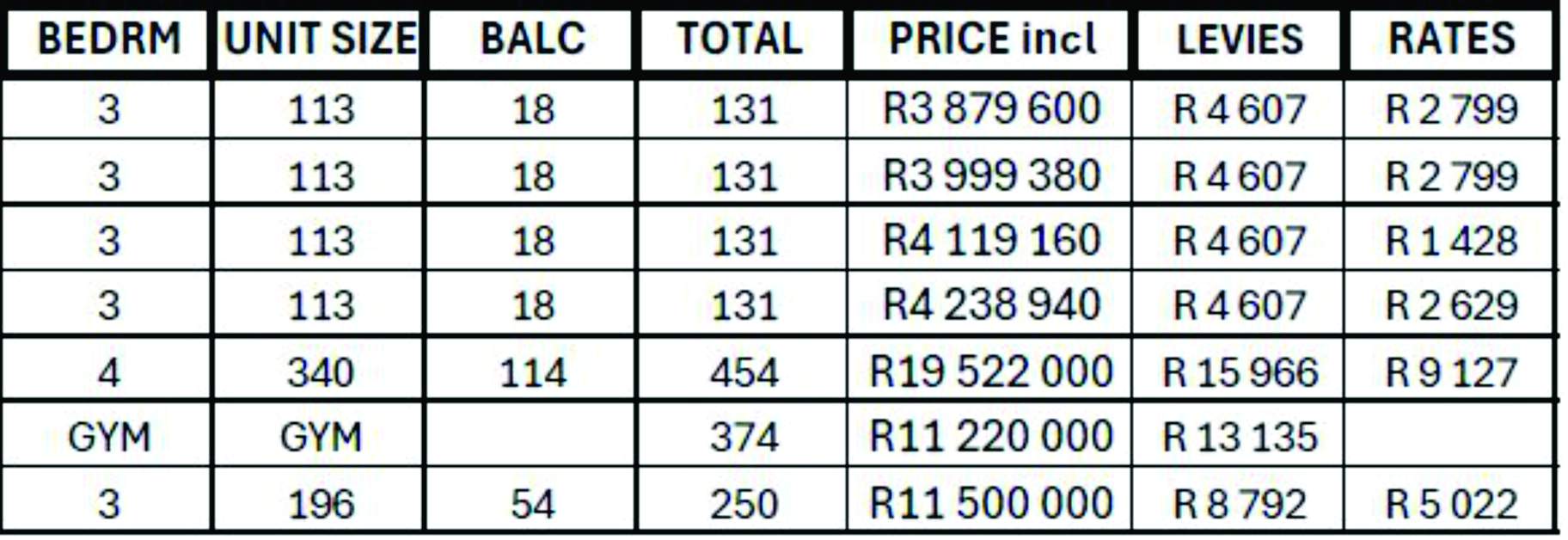 Price list available for available apartments in the photos.