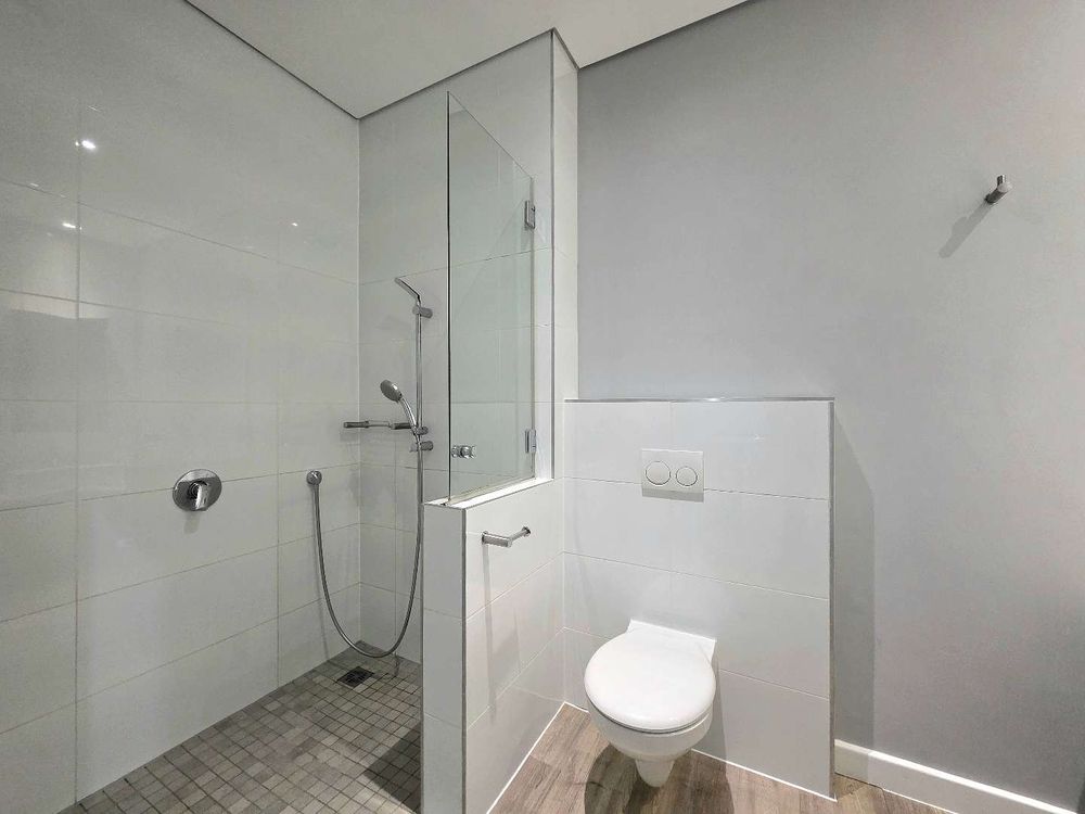 The en-suite bathroom features a walk-in shower, basin, and toilet.