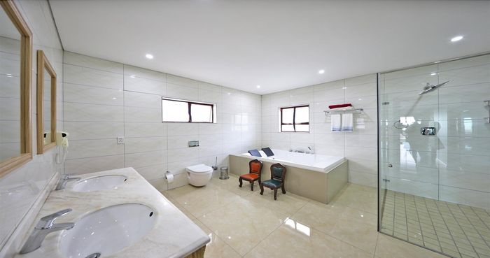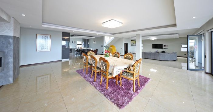Five bedrooms, five bathrooms, 550 m² floor size, 1,237 m² land size, double garage in Plattekloof.