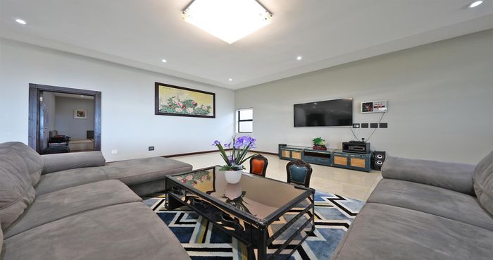 Three-story family home in Baronetcy Estate with multiple reception areas, gourmet kitchen, pool, and panoramic views. Fully furnished.