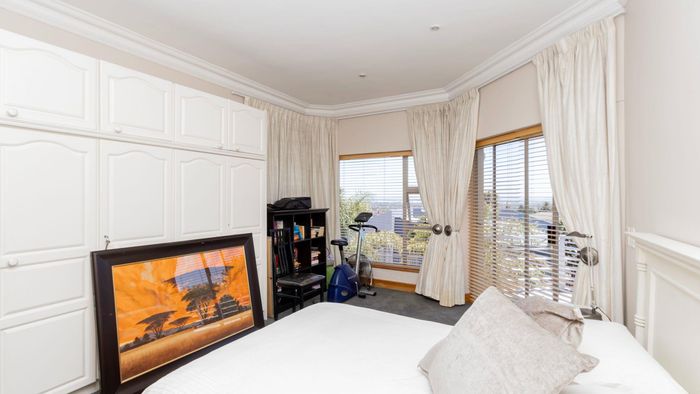 Versatile 4-bedroom, 5-bathroom Plattekloof home with office space, flatlet, and business potential; features parking, security, and scenic views.