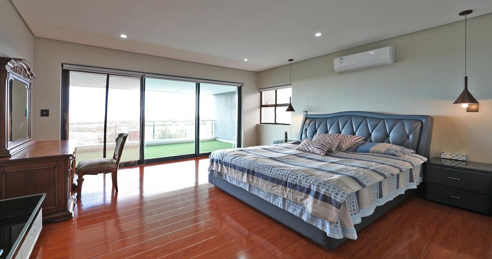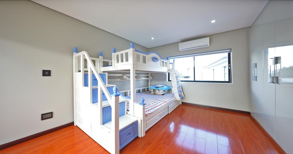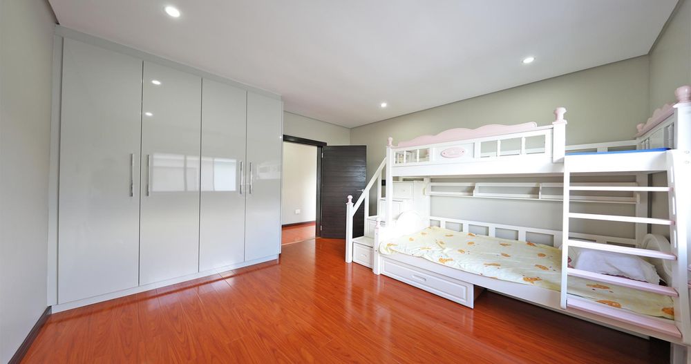 On the third level, a short flight of stairs leads to a cozy family room and five bedrooms, three of which are en-suite.