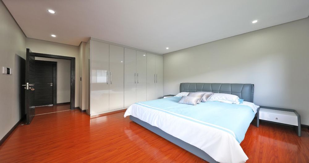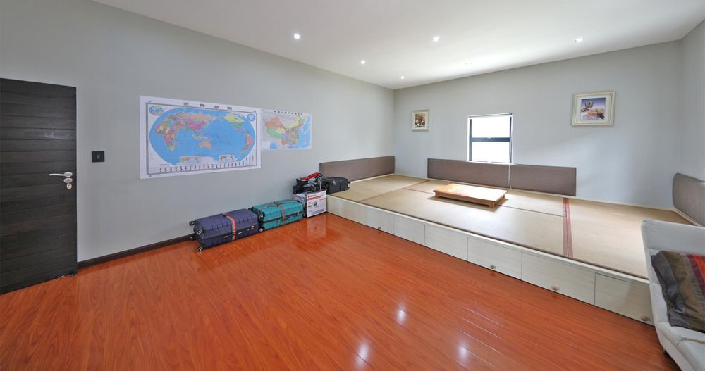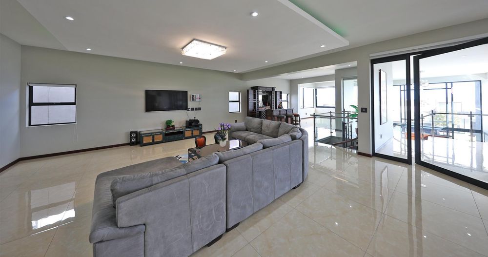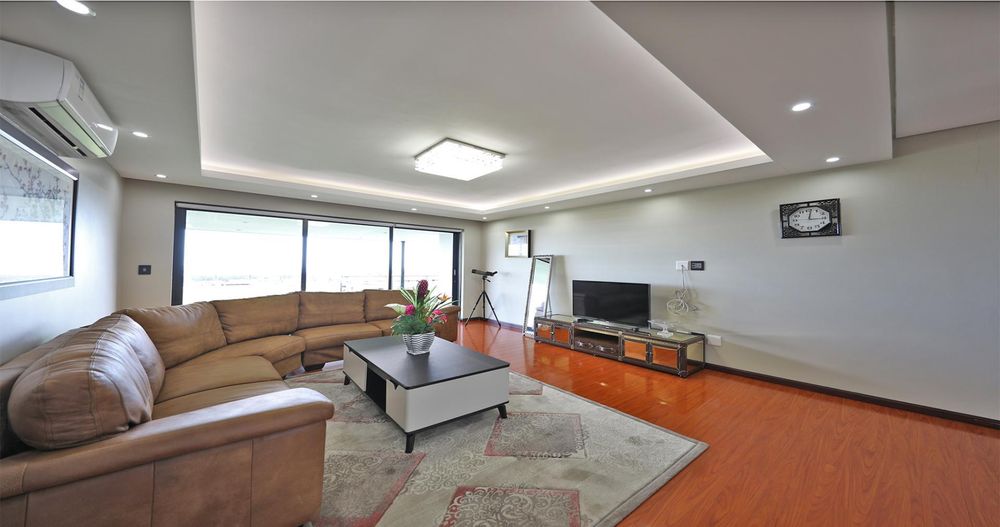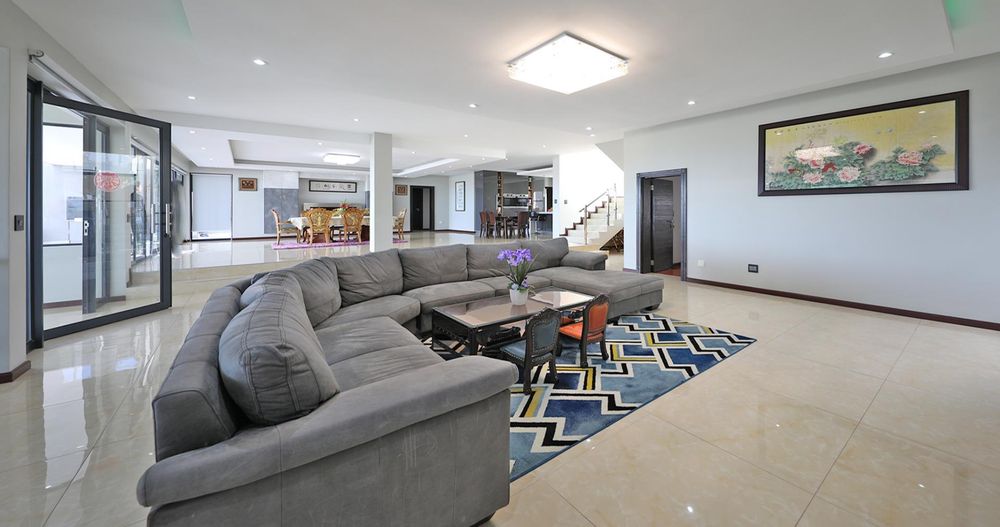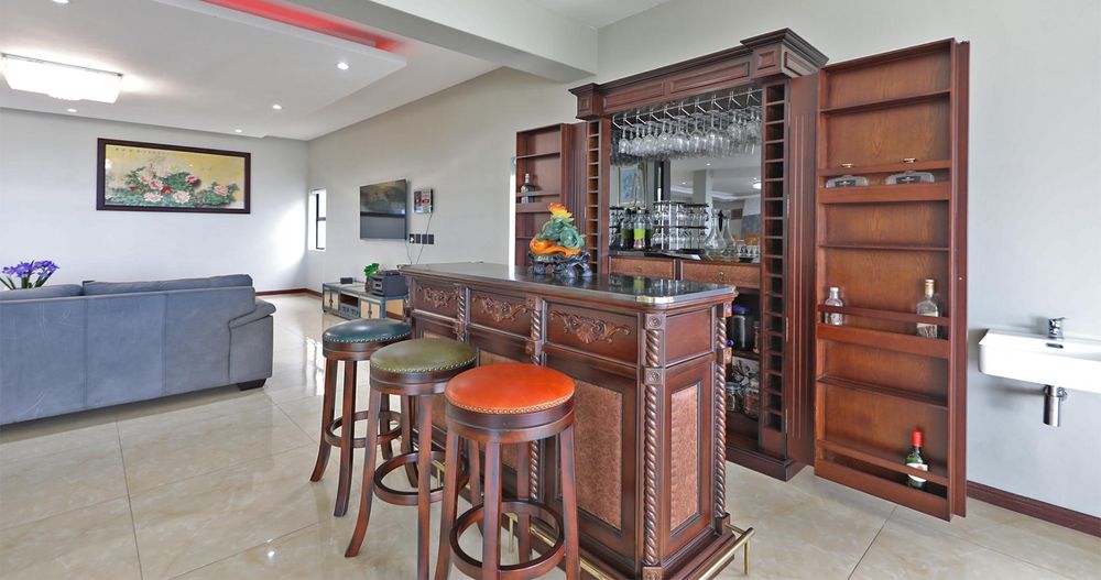 Ascending the elegant stairs, you'll find three expansive open-plan reception areas, a designer gourmet kitchen fitted with top-tier appliances, and a scullery of equal grandeur. This level also boasts a large bedroom with an en-suite bathroom and a dressing room. Every room offers breathtaking panoramic views of Cape Town and the ocean.