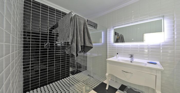 Five bedrooms, five bathrooms, 550 m² floor size, 1,237 m² land size, double garage in Plattekloof.
