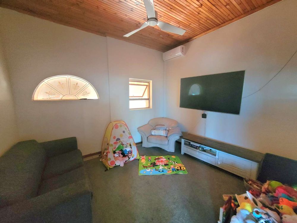 4 Bedroom family home with two bathrooms. All bedrooms with build in cupboards. 4 Living rooms, Lounge with fantastic views onto Table Mountain and surrounding areas. This property offers lots of accommodation like a Private Study, TV Room, Separate Dining room and Braai room that leads through sliding door to the Swimming pool on North side of house with full sun. The open plan kitchen with lots of cupboards also have a build in oven and hob. A Separate scullery. Spacious sun/laundry room, jacuzzi and enclosed balcony with beautiful views are some of the extras. Here you have a staircase down to a beauty salon (a room with ensuite and outside door). It can be used as a bachelor patch to rent out or for the older teenager. Large double garage with automated doors plus servants accommodation of a room, shower, basin and toilet. Around the corner is an automated gate into backyard for lots of parking etc. This house is situated in a sought after area with easy access to Jip De Jager, Uys Krige and the N1.