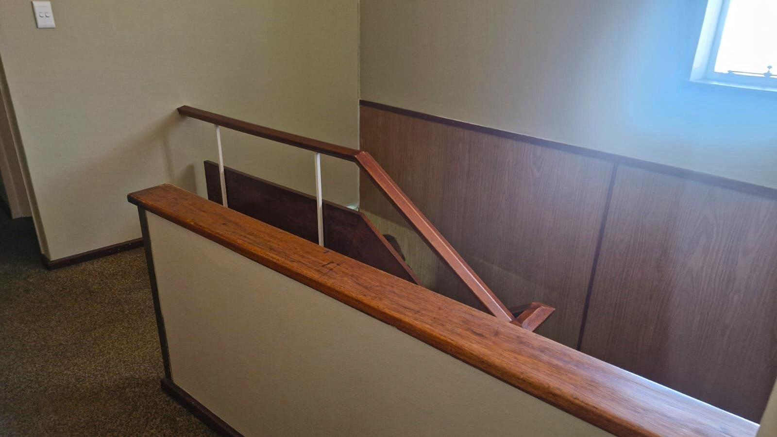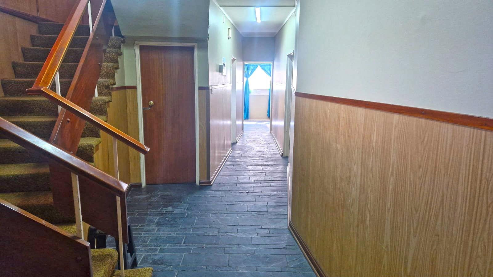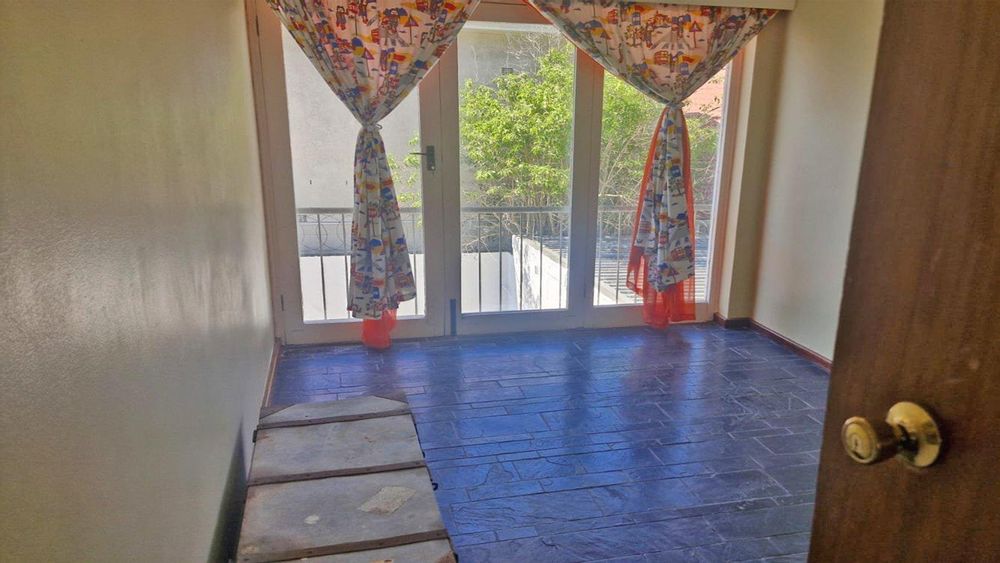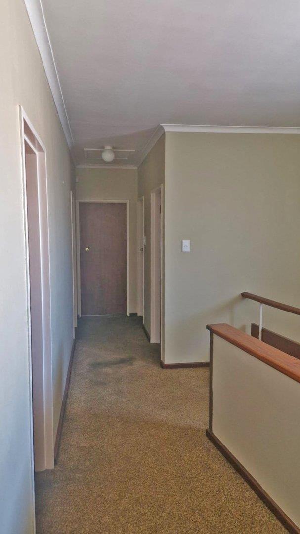 Five bedrooms upstairs with two bathrooms. The main bedroom has its own private balcony. There is also an outside room and double garage. This property has got enough enclosed parking for at least 4 vehicle’s