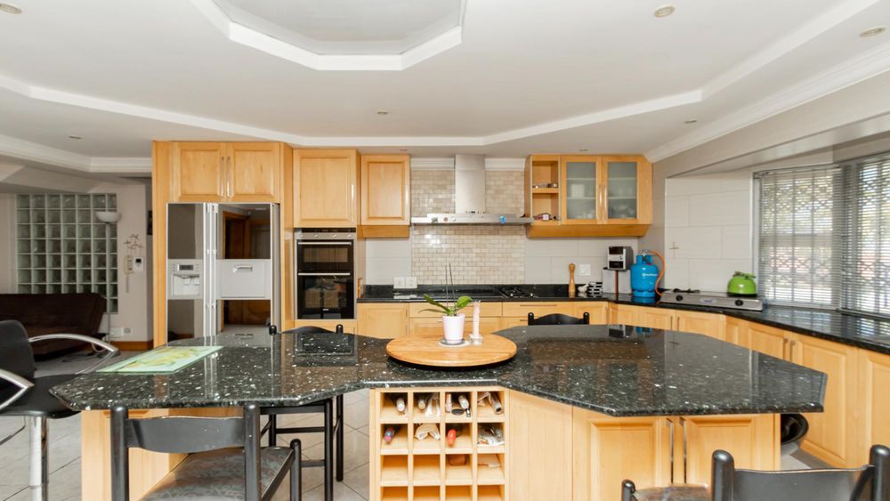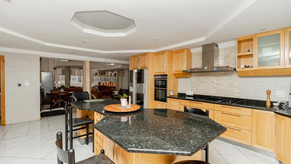 This unique, architecturally designed masterpiece is perfect for a big family or as a guesthouse. As you enter the home through the double door entrance you are met with very impressive double volume ceilings and spectacular finishes.